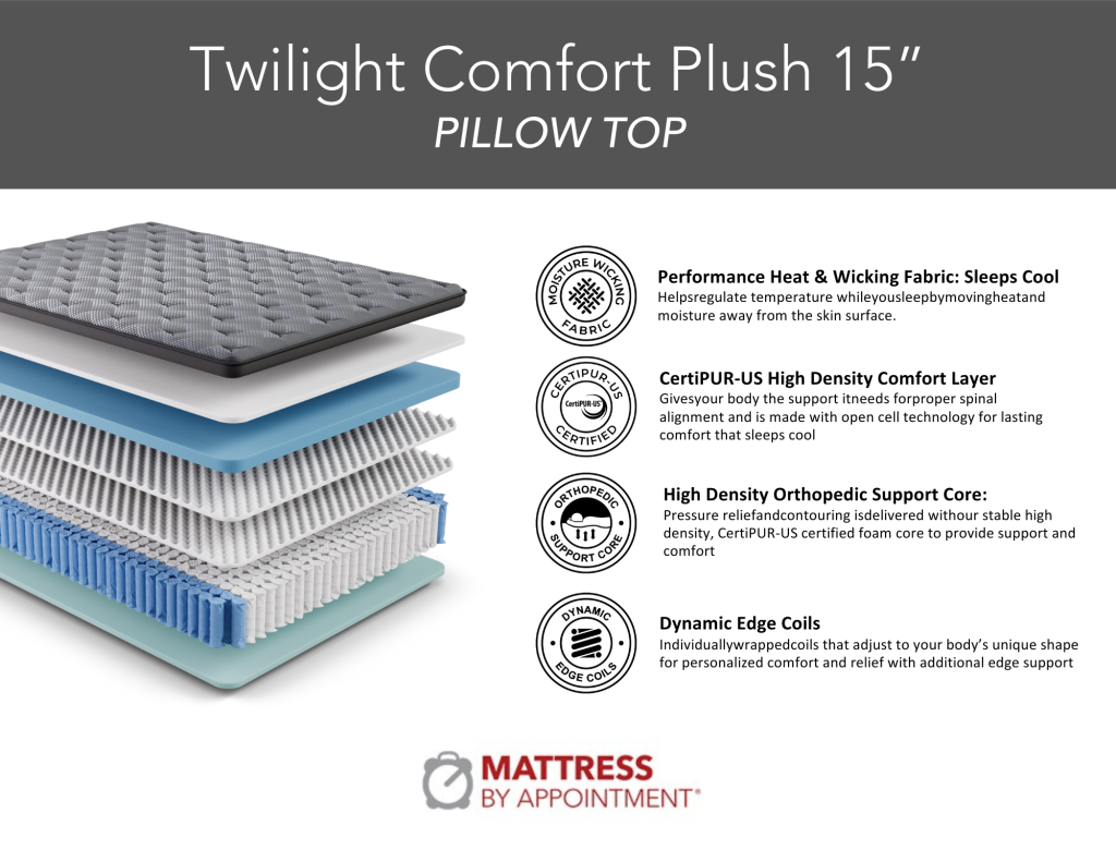 • Feel: Offers the bounce and airflow of springs with the contouring comfort of foam.